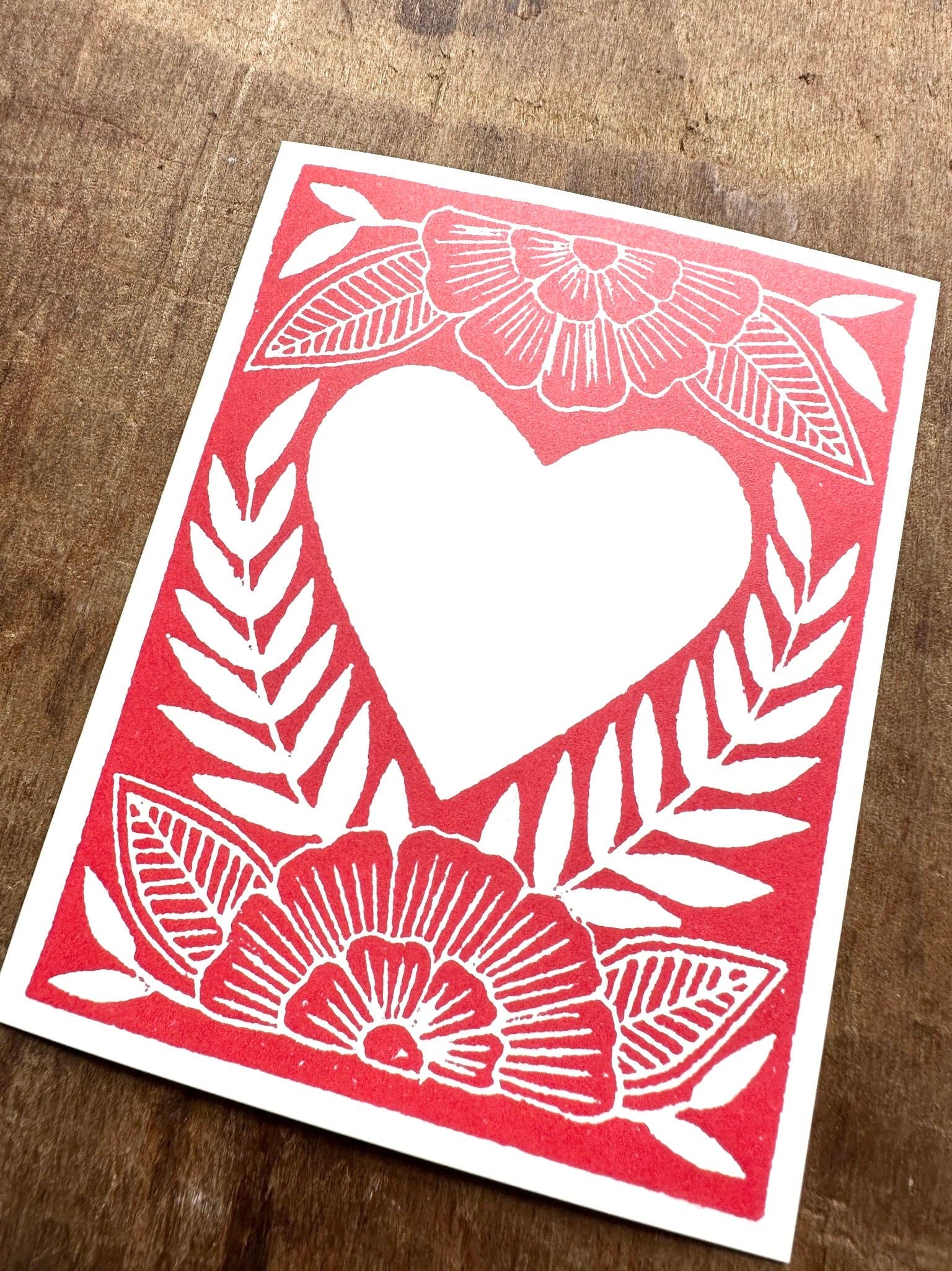A Katharine Watson offset printed card, printed in Maine on 100lb cream cardstock with deep green ink. Each card is a standard A2 size, 5 ½” by 4 ¼”, is blank on the inside, and comes with a neutral taupe envelope.