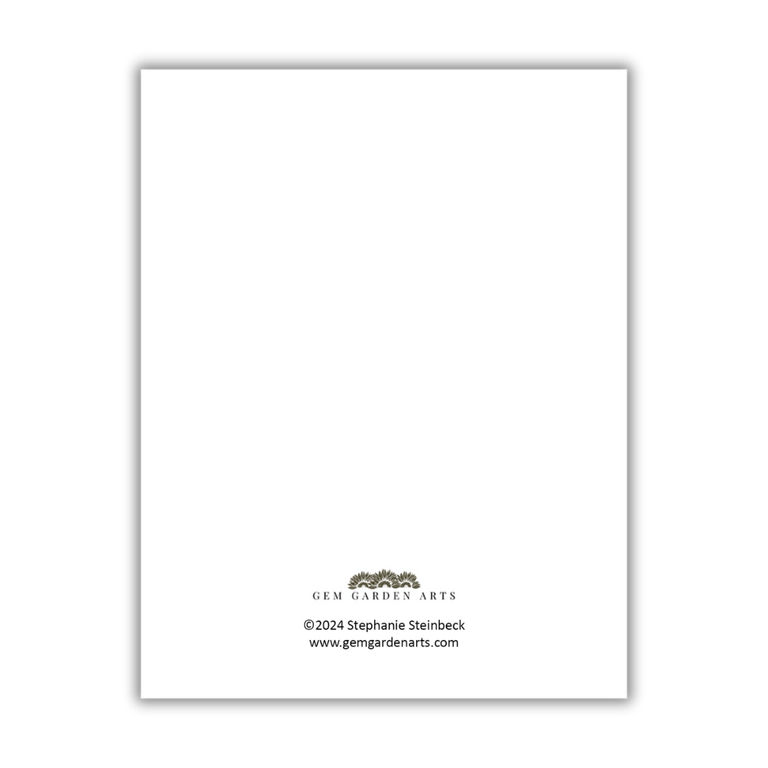 There's no nicer way to remind them how much you miss them than with this sweet little owl. These are always great to have on hand for future use! Professionally printed on quality white cardstock, and a white envelope is included for each card you order. The perfect addition for your stationery collection - or to give as a gift!