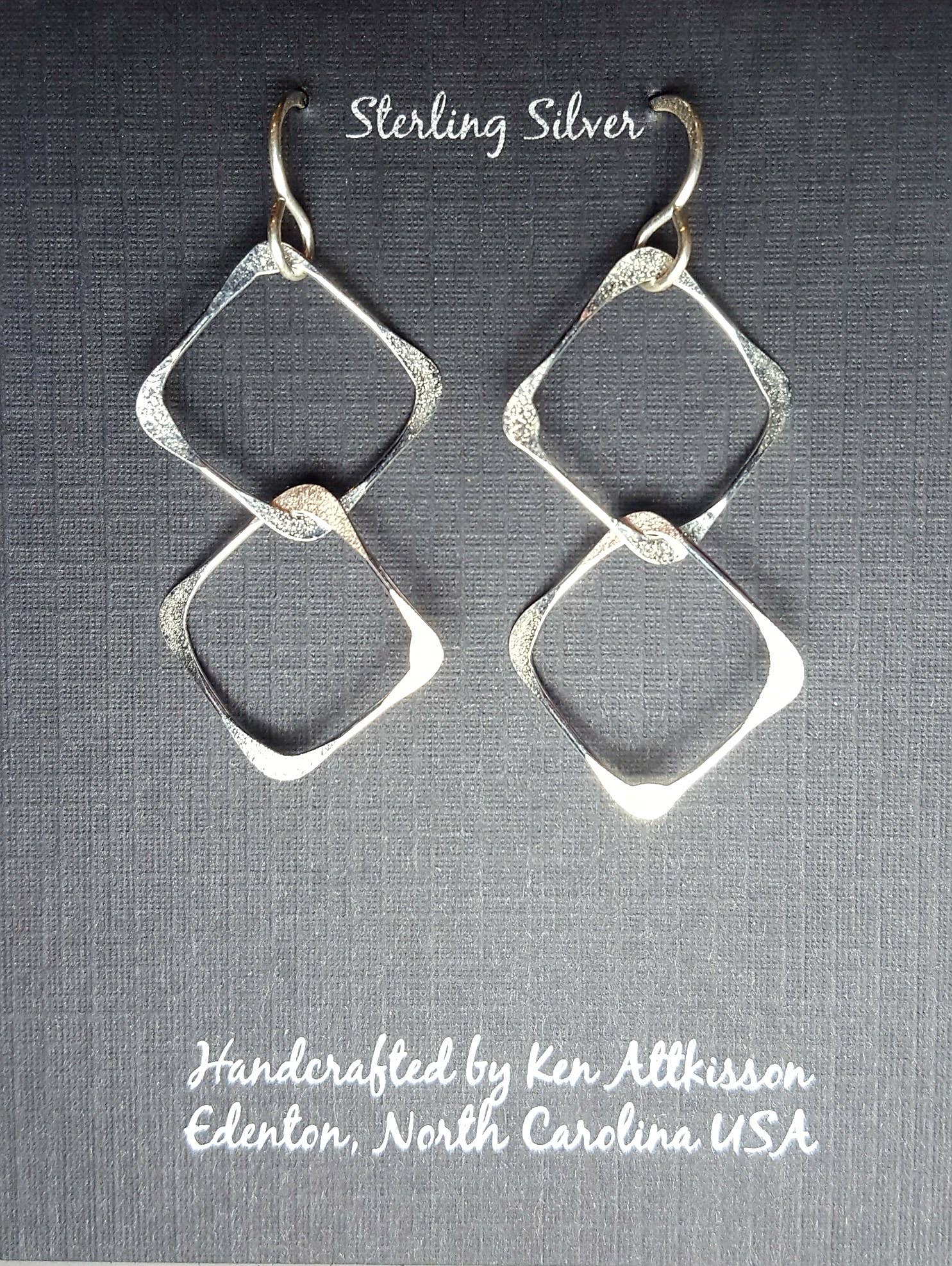 Embrace the modern yet timeless appeal of our sterling silver earrings. This design features two small squares dangling from sterling silver ear wires. Meticulously handcrafted in Edenton, North Carolina, each piece carries an essence of joy that mirrors the satisfaction experienced in its creation.