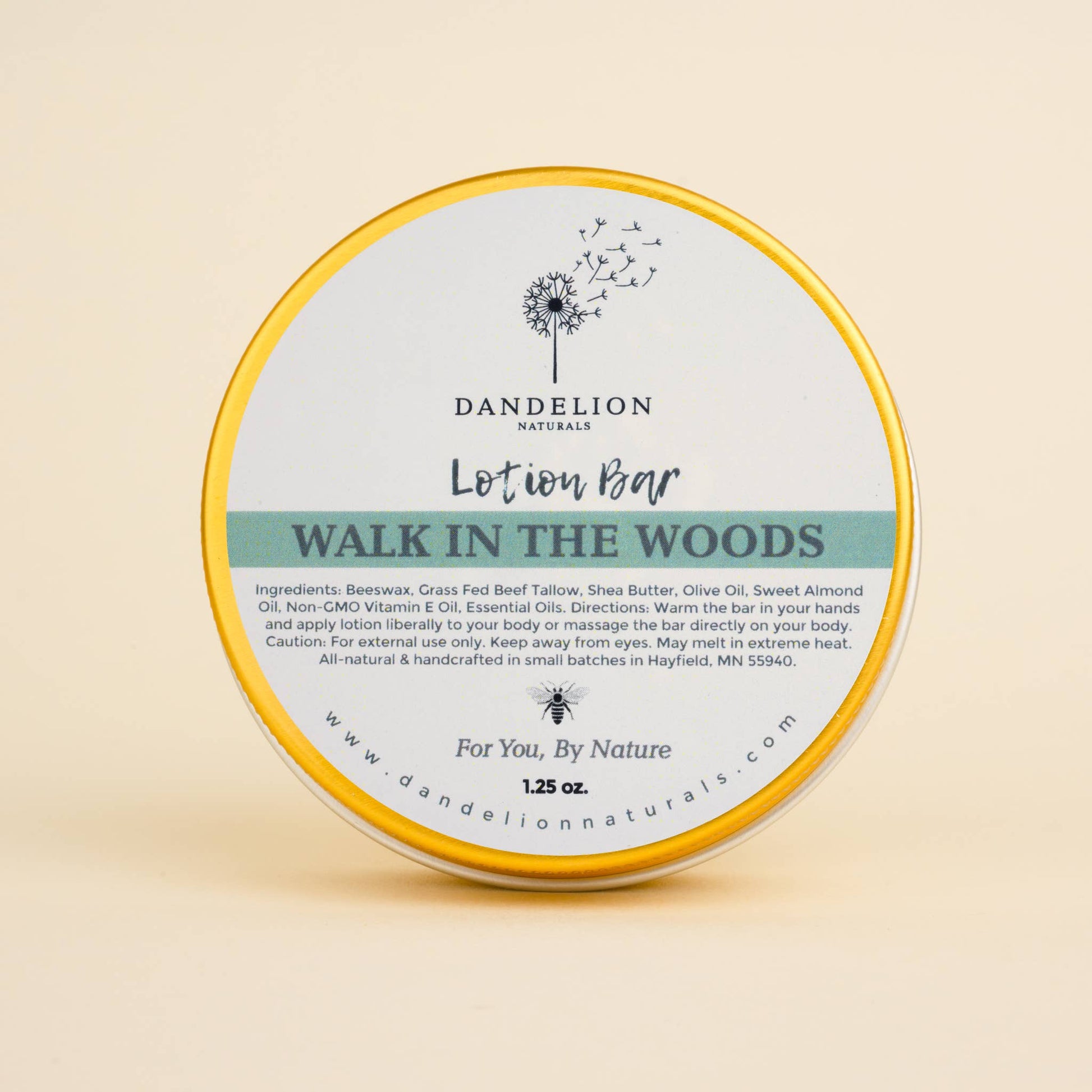 Tallow Lotion Bars from Dandelion Naturals are a great alternative to liquid lotions! They do not contain water or preservatives and are 100% natural! These are a customer favorite. Warm the bar in your hands and apply lotion liberally to your body or massage the bar directly onto your body. The warmth of your skin activates the lotion to help it glide on smoothly. These are great for dry skin areas such as hands, elbows, and feet and are safe to use externally anywhere on your body. Lotion bars are convenient for your purse, travel, or gym bag and come in a handy tin with a screw top lid. The ingredients are picked for their moisturizing, healing, anti-inflammatory, and antimicrobial properties leaving your body moisturized and healthy all day long. This Lotion Bar pairs beautifully with our top selling Walk In The Woods Bar Soap. Great duo for a cute gift set.